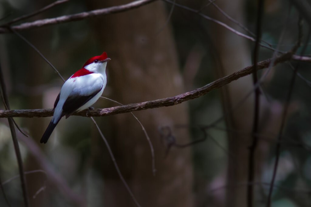Com topete vermelho vivo e corpo branco, só vive numa pequena área do Ceará.